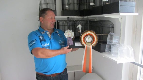 Tot mijn verbazing vielen er 3 van mijn 8 vogels in de prijzen. 1ste prijs bij de witte klasse en 2e en 4e prijs bij de gele klasse.